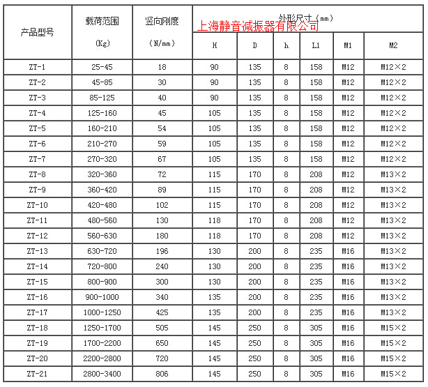 ZT型阻尼彈簧減振器外形尺寸及技術特性表: