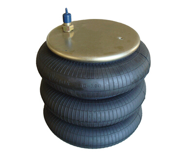 空氣彈簧由上蓋、橡膠囊、上箍環(huán)、下箍環(huán)、空氣彈簧活塞、O形橡膠密封圈和緩沖塊等組成。
