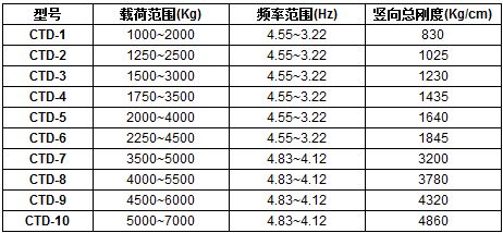 CTD型大載荷阻尼彈簧隔振器采用多個壓縮螺栓彈簧組合,側(cè)向阻尼塊,增加垂向阻尼系數(shù)。通過調(diào)節(jié)螺栓可改變縱向及橫向剛度,從而保證系數(shù)頻率,確保隔振效果。通過調(diào)節(jié)螺母可調(diào)整整個機(jī)械設(shè)備的安裝水平高度,有效地保證機(jī)器設(shè)備的安全運(yùn)行。特別適用大中型機(jī)械設(shè)備的積極隔振和消極隔振,亦可用于隔聲房的地坪隔振。