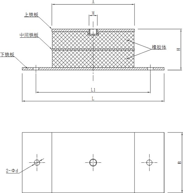 PB型板式橡膠隔振器是由鋼板、合成橡膠模壓硫化而成,具有結(jié)構(gòu)簡單、安裝更換方便、載荷范圍廣、固有頻率低等優(yōu)點(diǎn),適應(yīng)工作溫度為-15℃~80℃,阻尼比≥0.078。